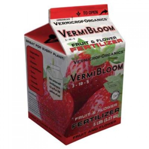 Vermicrop Organics VermiBloom Dry Fertilizer is produced for all plant types in the fruit and flower stage. It goes to work quickly and has all the essentials to promote prolific blooming and ripening of all fruits, vegetables and flowers. The ultimate blend of natural fertilizers from the sea, earth and mountains are combined to form an unequaled Bloom fertilizer free of fillers. Designed for heavy blooming fruits and flowers, you can attain stellar yields in the easiest way ever imagined for the perfect harvest.
