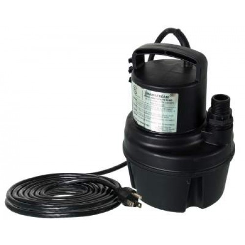 Completely submersible sump pump features a 1/6 HP oil-free motor with thermal protection, a removable screened inlet and a sturdy, integrated carry handle. High impact thermoplastic housing makes it lightweight and easily portable. Pumps down to 1/8in. Includes garden hose fitting and 25' cord with strain relief.