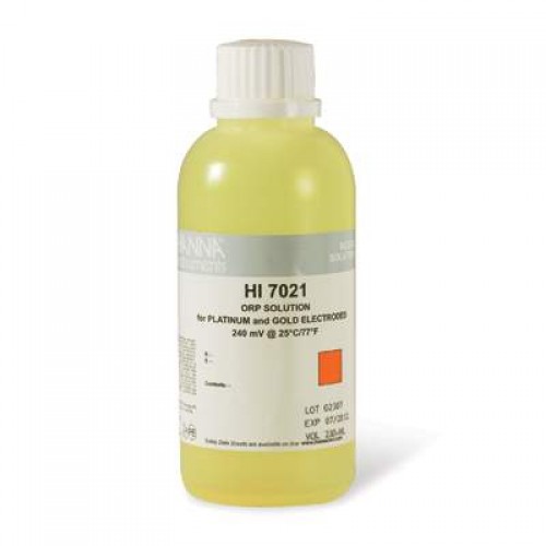 ORP standard solutions allow you to test the precision of ORP electrodes. For example, by immersing the electrode in HI 7020 solution, you should read within the 200 to 275 mV range (@20°C/68°F).