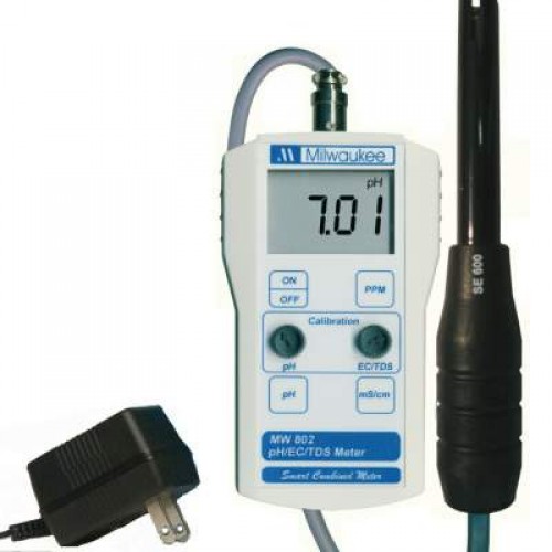 Comes with SE600 Combo Probe, 110 Volt Power Supply and 9 volt battery, with Unit Mounting Kit, a 20 ml sachet of Calibration Solution of pH 7.01, 1500 ppm and 1413µS/cm