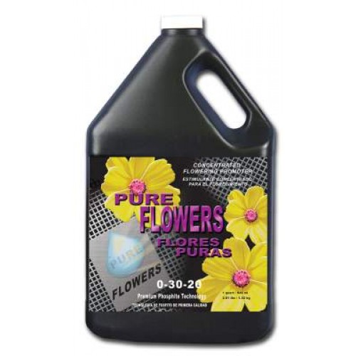 Pure Flowers liquid was scientifically formulated with cutting edge phosphite technology. Pure Flowers 0-30-20 has the highest nutrient levels ever achieved in a completely solubilized liquid. The unique molecular structure of a phosphite is easily absorbed through the roots and leaves ensuring the crop instantly uptakes potassium and phosphorus. The ultimate flowering supplement will maximize your crops yield and boost the crops immune system. The immune system will then be able to better resist powdery mildew, brown rot and other harmful fungi. While protecting it also accelerates flower development and increases yields.