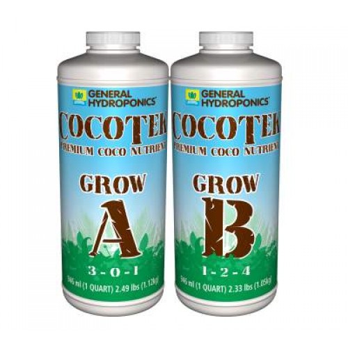 CocoTek Grow A+B provide balanced and complete plant nutrition for the vegetative phase. This unique formula provides elevated levels of our proprietary Calcium blend. CocoTek nutrients are designed for Coco and will work well with any growing method and media.