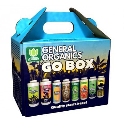 Includes one of each of the following General Organics products (8 nutrients total): one 16 oz BioThrive Grow, one 16 oz BioThrive Bloom, one 8 oz CaMg+, one 8 oz BioRoot, one 8 oz BioWeed, one 8 oz BioBud, one 8 oz BioMarine, one 8 oz Diamond Black.
