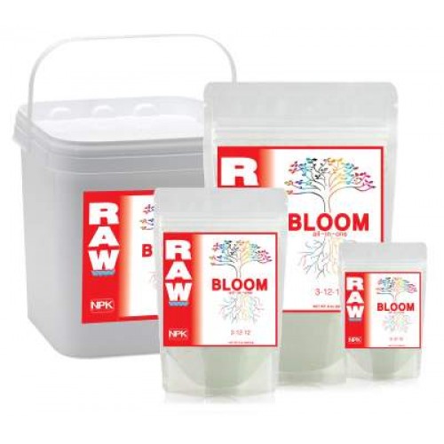RAW BLOOM is a tested blend of all 12 RAW Soluble plant nutrients, essential elements and supplements. This blend has been proven to be an optimal all in one base 'bloom' horticultural fertilizer. RAW BLOOM is used throughout the entire flowering stage. Derived from plant protein hydrolysate, mono potassium phosphate, potassium sulfate, cane molasses, sodium borate, iron DTPA, magnesium sulfate, manganese sulfate and natural volcanic ash. Also contains non-plant food ingredients; humic acids derived from leonardite and peat, kelp (ascophyllum nodosum), silicon dioxide derived from diatomite and yucca extract.
