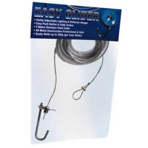 The Easy Glider light hanging kit is ideal for all your light and reflector hanging needs. It features easy push button and glide action to adjust your reflectors or lights for optimum performance. The all-metal construction features a 6 1/2 foot cable that holds up to 44 pounds per Easy Glider. Each package features one pair of Easy Gliders.