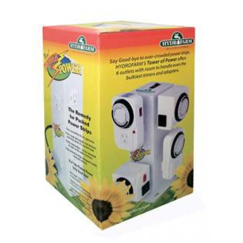 Say goodbye to overcrowded, under-utilized power strips. Hydrofarm's TOWER OF POWER offers 6 outlets with enough room to accommodate even the bulkiest timers and adapters. The Tower of Power will handle all you can throw at it. In your home office it will organize all your computers and peripheral devices. In the shop it's sturdy enough to power your tool array. For the hydroponics gardener, the Tower of Power will accommodate all your timers. And because it's vertical, it takes up less space than your typical strip.