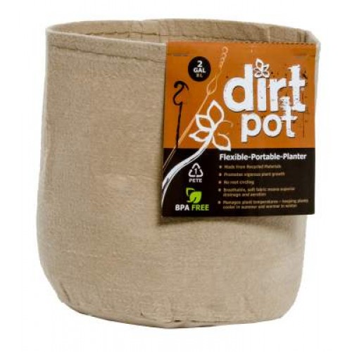 Hydrofarm's tan Dirt Pots offer value and versatility for outdoor use or as part of hydroponic growing systems. Featuring porous breathable fabric that is made from 100% recycled water bottles, these planters allow your plants to thrive by promoting exceptional root health and vigorous plant growth. The soft-sided construction allows the planter to conform to your terrain, making it the perfect choice for all growing areas. Tan Dirt Pots are stronger than similar products, with reinforced seams and stitching. They are non-degradable, so they will hold up for multiple growing seasons.