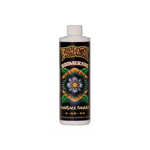 Even Mother Nature needs a little help sometimes! Bush Doctor® Boomerang® will lend a hand when the stresses of temperature fluctuations, unintentional neglect, and mineral salt build up knock your beauties down for the count.  Boomerang's® microbial-based formula helps heal damaged root tissue while encouraging new root growth and internodal vegetative growth.  It contains solubilized organic nutrition that is immediately available to plants.  In addition to encouraging amazingly fast recovery of stressed plants, Boomerang can also be used as a vegetative supplement. Boomerang® is the inComeback Formulain that gives your plants a fighting chance.