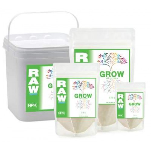 RAW GROW is a tested blend of all 12 RAW Soluble plant nutrients, essential elements and supplements. This blend has been proven to be an optimal all-in-one base “grow” horticultural fertilizer. RAW GROW is used through out the entire vegetative stage. Derived from plant protein hydrolysate, mono potassium phosphate, potassium sulfate, cane molasses, sodium borate, copper sulfate, iron DTPA, magnesium sulfate, manganese sulfate, zinc sulfate and azomite. Also contains non-plant food ingredients; humic acids derived from leonardite and peat, kelp (Ascophyllum nodosum), silicon dioxide derived from diatomite and yucca extract.