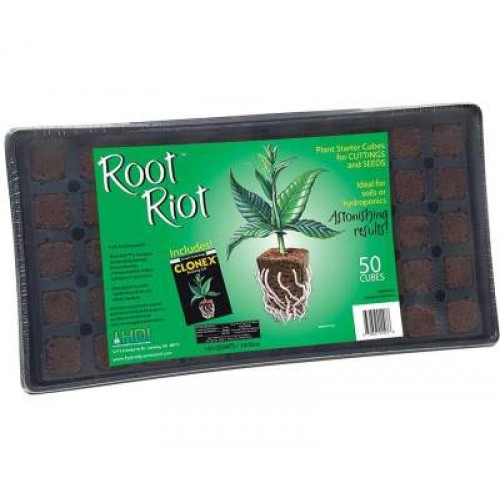 Root Riot™ Plant Starter Cubes are consumer friendly and come packaged ready-to-use in two convenient sizes! Each kit includes a black plastic propagation tray without holes, a 50 cube plastic insert and 50 ready-to-plant Root Riot™ Plant Starter Cubes. Each tray of cubes also includes a complimentary 15 ml packet of Clonex Rooting Compound Gel, which is the perfect amount to stick 50 cuttings.