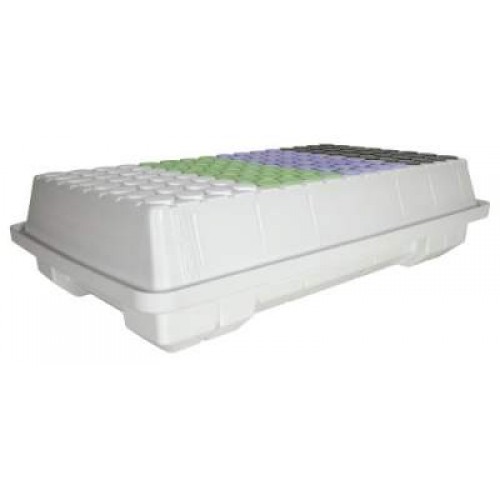 The new EZ-Clone Lo Pro 128 overall height has been reduced by four inches, while increasing the structural integrity of the new proprietary Lid and Reservoir. Manufactured from durable UV protected HDPE plastic. The Lid has alpha numeric symbols formed directly into the plastic, which allows simple identification of multiple strains of cuttings, and comes with four way finger slots for improved Cloning Collar extraction. The Reservoir has an increased lip height, with an extended flange and drainage gutters, to ensure a leak-proof design, and improved interface when opening the system to view cuttings. The water pump has an extended baseplate and additional suction cups to prevent any possible tipping. It also includes four different colored cloning collars.