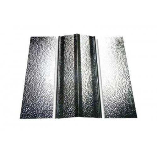 Rugged, compact design that is adjustable to 3 different positions: Wide, medium and deep. For every position the efficiency is better than 90%. The three Miro Aluminum reflector plates are replaceable. We recommend changing the reflector plates every year. In set-ups with multiple reflectors you can adjust them asymmetrically. Suitable for MH or HPS lamps ranging from 400 - 750 watts. The lamp cord terminal is shielded by a metal housing. 13 ft lamp cord included. Reflector dimensions: 18.3 in long x 9.8 in wide x 5.5 in high.