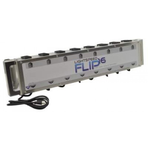 Lightspeed Flip 16 Lighting Controller powered by Allen Bradley. Automated 8 ballast, 16 light switching unit, allows you to run 16 lights from 8 ballasts. Works with ballasts plugged into any voltage. Heavy duty Lightspeed construction, these units are built to last! Can be used with any 120V timer. Save money on ballasts and use 8 ballasts to run 16 lights! Optional 240V timer outlet.