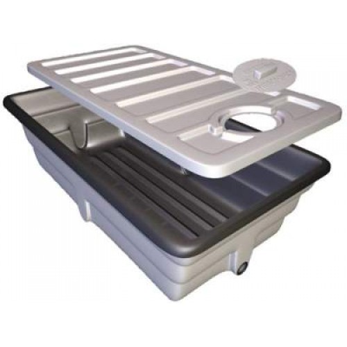 The GH Panda reservoir is 40 gallons. It has a white exterior (which reflects heat) and a black interior (which discourages algae growth). It offers a small foot print and is very durable. Purchase lid separately.