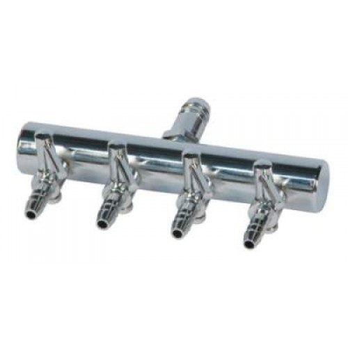 High quality chrome air manifolds. Each outlet has individually controlled valves. Barbed ends for use with tubing for a tight fit. Distributes air flow to four or more air stones or air diffusers in order to insure that equal air flow is provided to each air diffuser or air stone. Use with 3/16 inch airline product #708215.