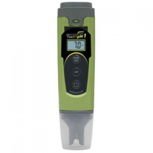 Economical, pocket sized meter. Waterproof, dust proof housing that floats. Easy to use; push-button calibration with auto buffer recognition. Includes transparent electrode cover/sample cup. Push-button calibration, HOLD function and error messages. Range: 0.0 to 14.0 pH. Power: four 1.5 Volt button cell batteries (included).