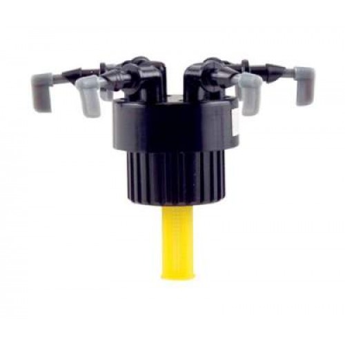 Hydro Flow 6 Outlet Distribution Manifold provides flexibility by distributing water to up to six sites. 2 in Poly Nipple is used for the body of the manifold. Simply push in flags to turn off desired outlets.