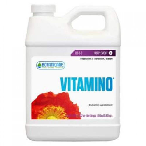 Botanicare developed Vitamino to preserve balanced plant growth and optimal plant heath in accelerated growth environments. Vitamino uses high impact supplements including select vitamins and all 20 essential amino acids to act either directly or as cofactors for enzymes that trigger biochemical pathways commonly used in plant tissue culture and lead to the synthesis of essential macromolecules. Vitamino can be used at anytime with any regimen throughout the grow and bloom stages.