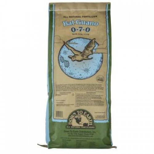 An excellent source of Phosphorus and Calcium naturally mined from ancient fossilized deposits, our Bat Guano 0-7-0 promotes exceptional flower and fruit development in all types of plants, trees and ornamentals while encouraging strong root growth and plant hardiness. Can be mixed into soils, applied as a side dress or prepared as a liquid for foliar sprays or hydroponics.