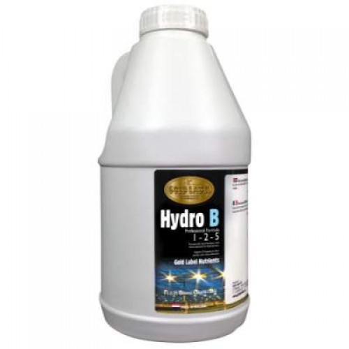 Gold Label Hydro is a professional grade mineral two component base plant nutrient for the vegetative and flowering phase on hydro substrates such as expanded clay pebbles (Gold Label RHP Hydrocorn #713750 & 713752) and rockwool. Add A & B in equal quantities, 0.5-3 ml/liter or until the desired EC. The chelated micro elements guarantee optimum availability in a wide pH range. Never combine pure nutrients together, always mix in water. Shake bottles before use, store at room temperature. Optimized for Gold Label single and mixed Hydro substrates.