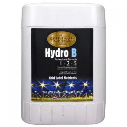 Gold Label Hydro is a professional grade mineral two component base plant nutrient for the vegetative and flowering phase on hydro substrates such as expanded clay pebbles (Gold Label RHP Hydrocorn #713750 & 713752) and rockwool. Add A & B in equal quantities, 0.5-3 ml/liter or until the desired EC. The chelated micro elements guarantee optimum availability in a wide pH range. Never combine pure nutrients together, always mix in water. Shake bottles before use, store at room temperature. Optimized for Gold Label single and mixed Hydro substrates.