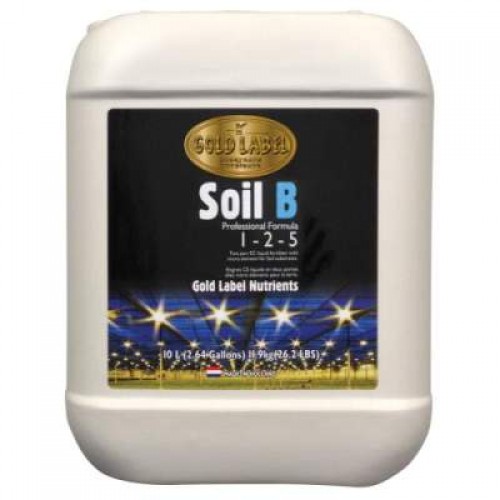 Gold Label Soil A & B is a professional grade mineral two component base plant nutrient for the vegetative and flowering phase on peat and compost substrates. Add Soil A & B in equal quantities, 0.5-3 ml/liter or until the desired EC. Never combine pure nutrients together, always mix in water. Shake bottles before use, store at room temperature. Optimized for Gold Label Special Mix.