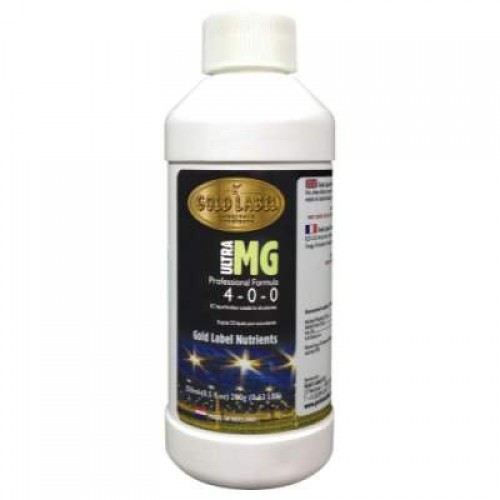 Gold Label Ultra MG is a nitrogen/magnesium additive for all plant development stages. Ultra MG has been specifically developed to perfectly balance your NPK and micro elements in all stages of vegetative and generative development. It contains high quality magnesium chelate which is easily absorbed by your crop in a wide pH range. Use continuously on inert media and as a replenishment on peat and compost media.