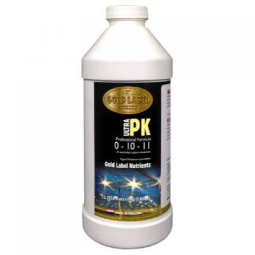 Gold Label Ultra Pk is a flowering additive based on advanced polyphosphates and chelated trace elements. Ultra Pk has been specifically developed to perfectly balance your NPK and micro elements in all stages of vegetative and generative development. The Ultra Pk formula prevents phosphorus from depositing at pH levels >6.2, promotes availability of Ca, Mg and trace elements and keeps your drip lines clean. Use in combination with all Gold Label Base Nutrients, 0.5 ml