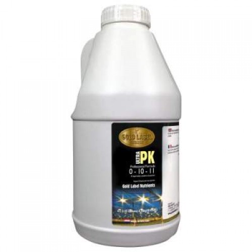 Gold Label Ultra Pk is a flowering additive based on advanced polyphosphates and chelated trace elements. Ultra Pk has been specifically developed to perfectly balance your NPK and micro elements in all stages of vegetative and generative development. The Ultra Pk formula prevents phosphorus from depositing at pH levels >6.2, promotes availability of Ca, Mg and trace elements and keeps your drip lines clean. Use in combination with all Gold Label Base Nutrients, 0.5 ml