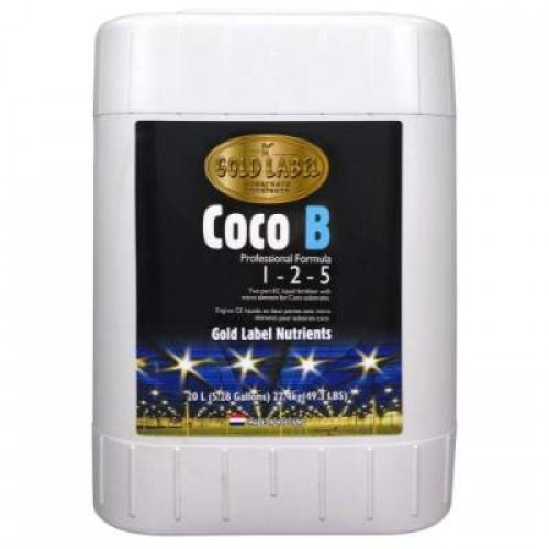 Gold Label Coco is a professional grade mineral two component base plant nutrient for the vegetative and flowering phase on coco substrates. Add A & B in equal quantities, 0.5-3 ml/liter or until the desired EC. The chelated micro elements guarantee optimum availability in a wide pH range. Never combine pure nutrients together, always mix in water. Shake bottles before use, store at room temperature. Optimized for Gold Label Coco substrate #713755.