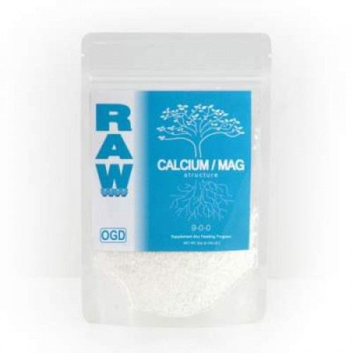 RAW Calcium/Mag is a soluble plant supplement that is used for horticultural purposes. RAW Calcium/Mag contains 15% calcium and 3% magnesium. RAW Calcium/Mag is an optimum ratio of fully water soluble calcium and magnesium. A 2 oz package of RAW Calcium/Mag makes up to 200 gallons, an 8 oz package makes up to 800 gallons and a 2 lb package makes up to 3200 gallons. RAW = soluble.
