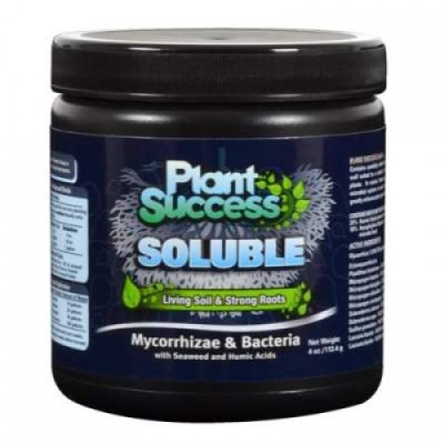 Plant Success Soluble is a soil drench for porous soil and contains 13 carefully selected mycorrhizal fungi, 2 tricoderma species and 17 bacterial species well-suited to a variety of soils, climates and plants. Plant Success Soluble contains mycorrhizal fungi that colonize plant roots and extend the root system into the surrounding soil greatly enhancing the absorptive surface area of root systems, forming an essential link between plant and soil, producing seedlings of the highest quality. It is a specially formulated natural root biostimulant. The plant enjoys improved nutrient and water uptake and superior field performance.