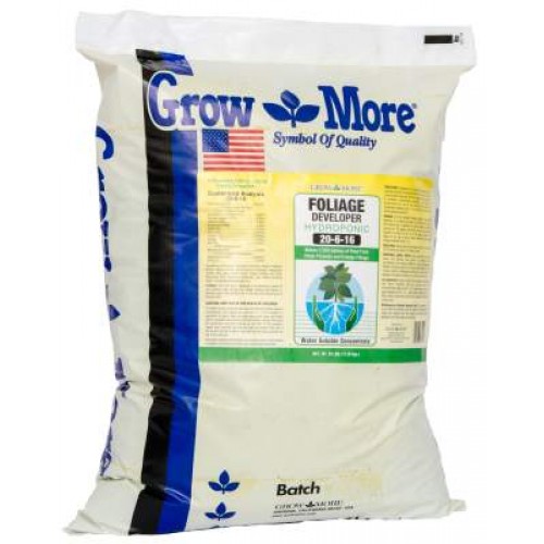Grow More Fertilizers are formulated to supply sufficient amounts of extra nutrients for high yields. High solubility, purity and the special forms of nitrogen, phosphorus and potassium make Grow More Fertilizers the ideal product. Water Soluble Grow is designed for cool temperature climates, dark weather or spring time, when plants need extra vigor and growth.