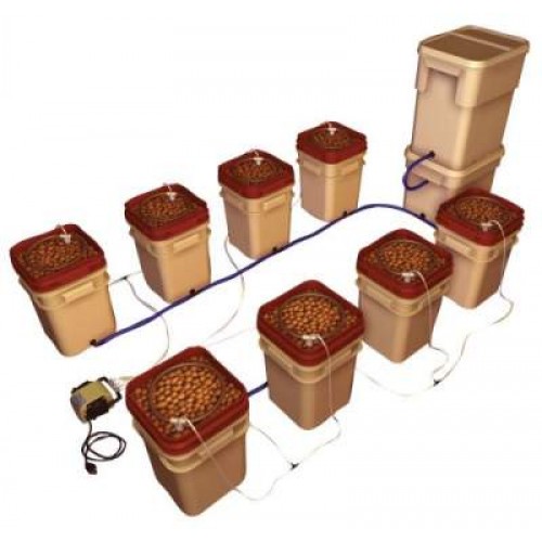 The WaterFarm 8-pack is eight WaterFarm module units connected to one Controller and integrated 13 gallon reservoir and an 8 gallon controller unit. The Controller will keep each unit topped off with the correct level of nutrient for low maintenance. The kit is powered by GH's Dual Diaphragm Air Pump and includes all the necessary hardware, supplies and Flora Series nutrients. The grower can arrange the WaterFarm units in a design that is suitable for any environment. This system does not include clay pebbles.