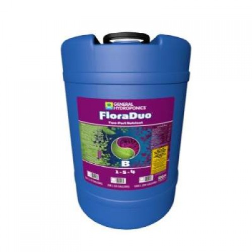 FloraDuo is a revolutionary new fertilizer product. Using only two components, growers can mix a large range of different nutrient blends for different kinds of plants and for phases of growth from seedling through harvest. The ratios of key ingredients including Nitrogen, Phosphorus, Potassium, Calcium, Magnesium, Sulfate and micronutrients all change to meet plant needs.