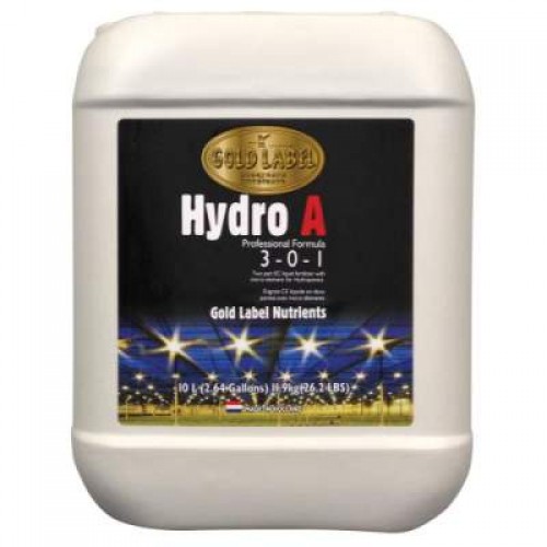 Gold Label Hydro is a professional grade mineral two component base plant nutrient for the vegetative and flowering phase on hydro substrates such as expanded clay pebbles (Gold Label RHP Hydrocorn #713750 & 713752) and rockwool. Add A & B in equal quantities, 0.5-3 ml/liter or until the desired EC. The chelated micro elements guarantee optimum availability in a wide pH range. Never combine pure nutrients together, always mix in water. Shake bottles before use, store at room temperature. Optimized for Gold Label single and mixed Hydro substrates.