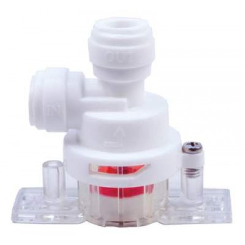 Installs on inlet line. If there is a leak anywhere in the system and water reaches the pad on the bottom of the leak protector the valve shuts off all incoming water preventing further damage from the leak. Pads are replaceable. Comes with 2 pads, double sided mounting tape and stainless steel mounting screws.