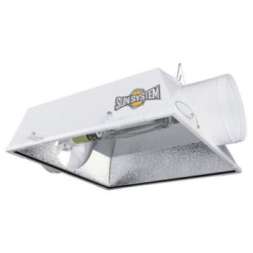 Completely sealed with double gasketed glass (between glass & reflector and glass & frame) for an air-tight seal. Swing Stop retention cable keeps glass from abruptly swinging down. Captured thumb screws & closure mechanism for ease of use and excellent sealing. Highly reflective aluminum interior offers excellent reflectivity and diffusion. Integrated air-cooled fittings with bead ring. Powder-coated galvanized steel housing. EZ Breeze aerodynamic junction box. US Patent: D698,628.
