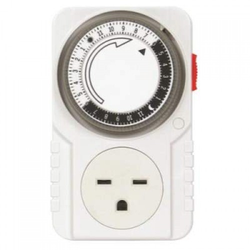 The Apollo 10 - 240 Volt/24 hour timer is the perfect timing solution for your hydroponic systems. With a 10 amp capacity, it's easy to set to run your pumps, fans, etc. The Apollo 10 has 96 non-detachable 15 minute trippers and can be configured in numerous timing schedules. One (1) outlet with 15 minute intervals. Heavy duty construction that is easy to use & simple to operate. Enclosure resists dust, rust and moisture. Only the highest quality components are used. Not for use with digital ballasts. 10 Amps maximum/240 Volts/60 Hz.