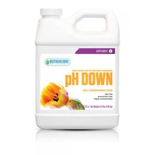 Botanicare's pH Down consists of a 29% concentrated phosphoric acid solution that rapidly lowers pH levels with its gentle, non-burning formula.
