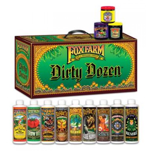 • 9 Pints Liquid Plant Food: Kangaroots® Root Drench, Microbe Brew® Plant Food Activator, SledgeHammer® Nutrient Rinse, Flowers Kiss® Foliar Plant Food, Boomerang® Comeback Formula, Bembé™ Sweet & Dandy, Big Bloom® Organic Fertilizer, Tiger Bloom® Vicious Bloomer, Grow Big® Soil Based Formula.