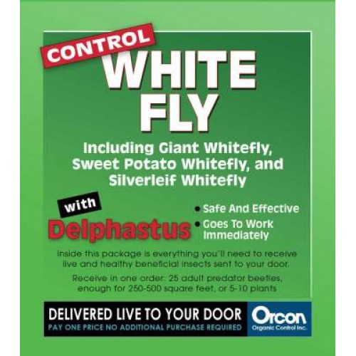 Delphastus is a small, shiny, black beetle, about one quarter the size of a ladybug, which feeds on several species of whitefly including greenhouse, sweet potato (silverleaf) and avocado whitefly. If whitefly are not present they will also feed on spider mites. Both the adult beetle and larvae are predators and will eat whitefly eggs and larvae, but not adult whiteflies. Each container includes 25 live adults.